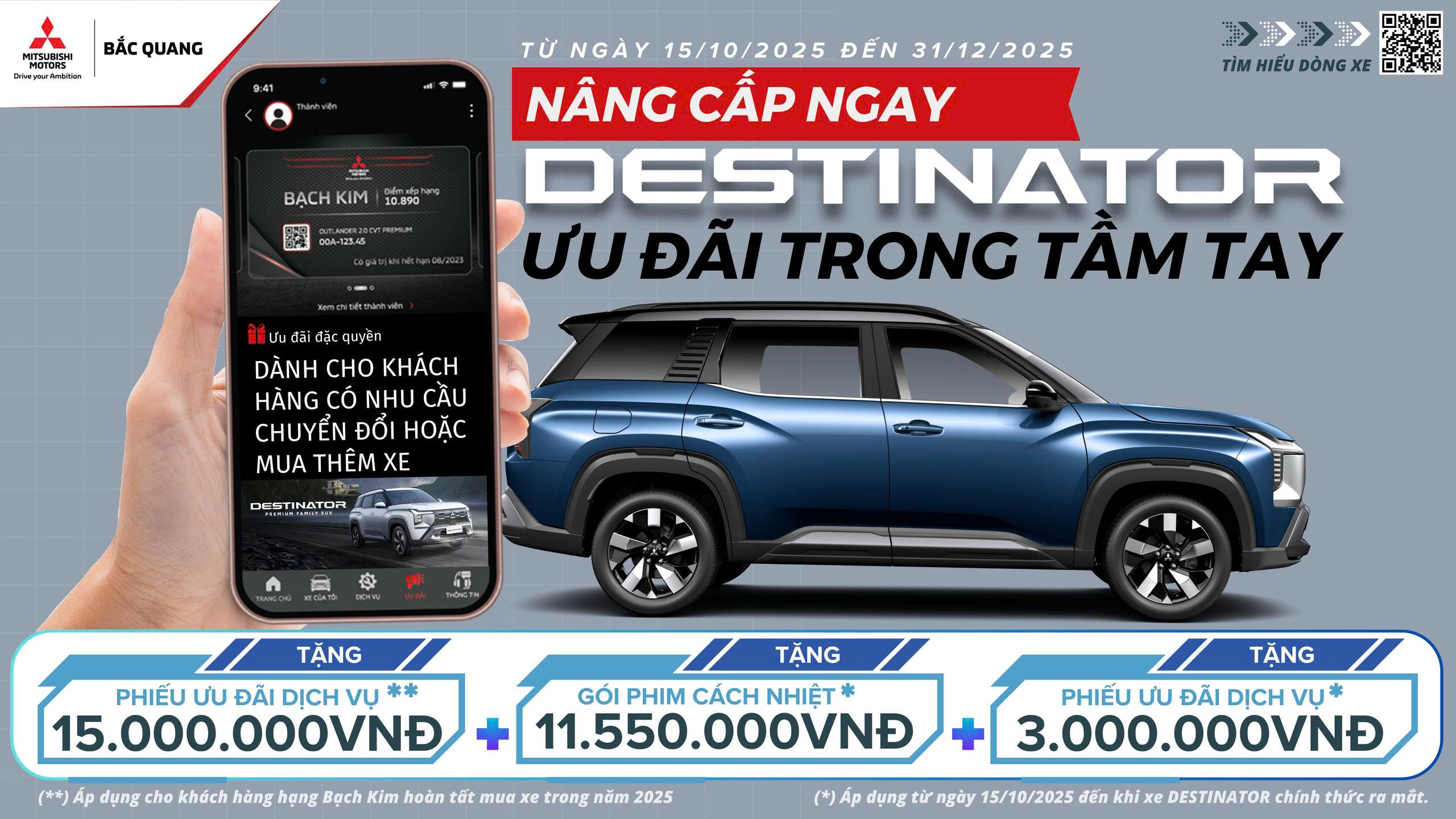 🚗 Từ nay đến 31/12/2025, Mitsubishi Bắc Quang gửi tặng ưu đãi đặc quyền khi Quý khách có nhu cầu chuyển đổi hoặc mua thêm xe DESTINATOR: